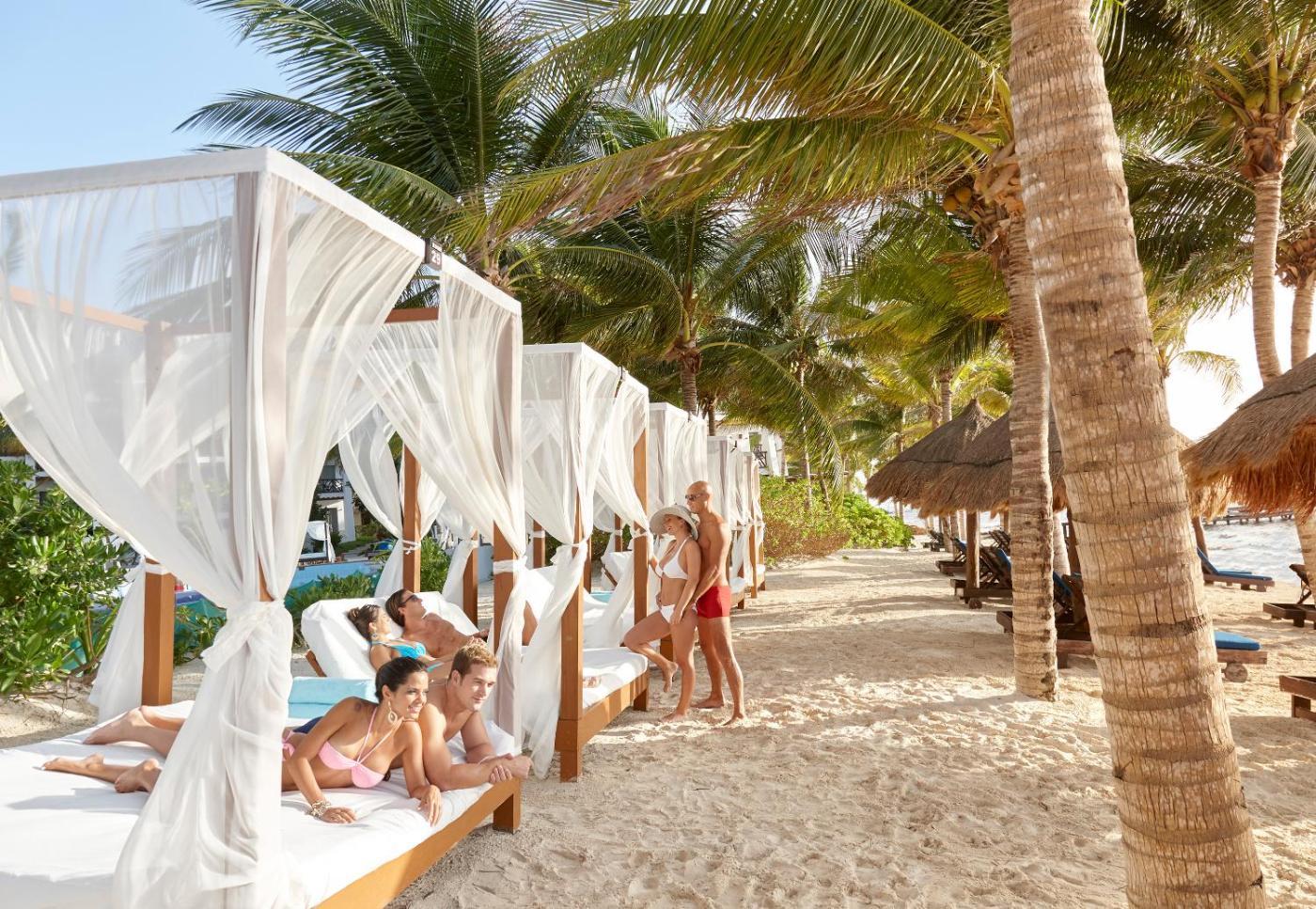 The deluxe, all-inclusive program offers exclusive amenities such as clothing-optional atmosphere, oceanfront pools, beach beds. There are three restaurants, 3 bars and a night club and spa. Guests can enjoy adult-oriented daily activities and nightly entertainment.
